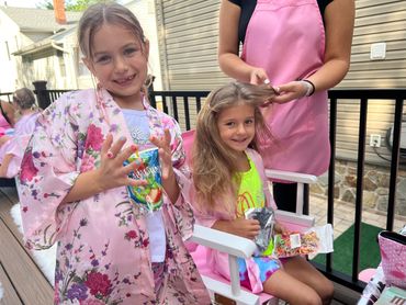 Includes Manicure & Pedicure Stations Plus Hair and Makeup Station. A Rainbow station for guests to create their own sugar scrub or rainbow lotion to take home. Plus 1 Craft. Robes and Slippers included for the duration of the party. Minimum 10 guest Maximum 20