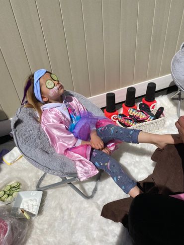 Spa parties may include age appropriate facials, manicures and pedicures with our Signature bath bombs. Services are for entertainment purposes only. Our hosts are not licensed professionals.